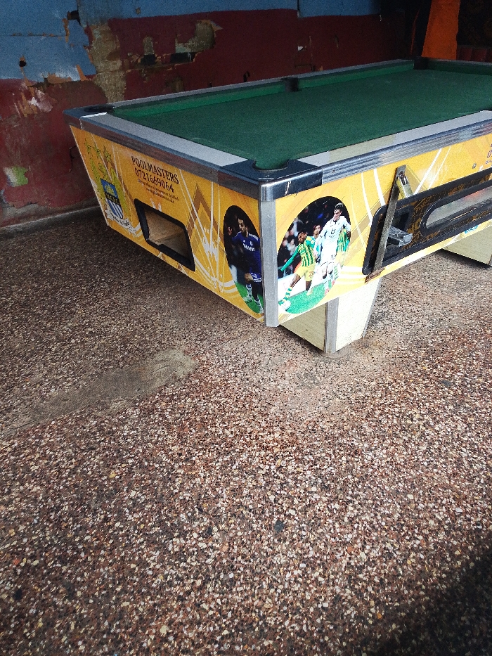 - "The image displays a stationary pool table situated indoors or in a semi-sheltered commercial area" by FM-HIgkg1, licensed under CC BY 4.0
