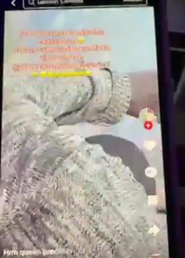 person viewing a TikTok video on a phone, the video shows a person holding and filming with an old Nokia phone, in front of a crowd