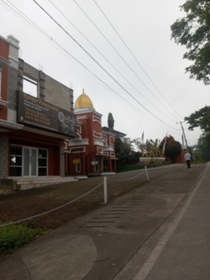 - "A street view features buildings, including one with a gold dome and another with a business sign reading "Kantor Pemasaran" by FM-GgaJg1, licensed under CC BY 4.0