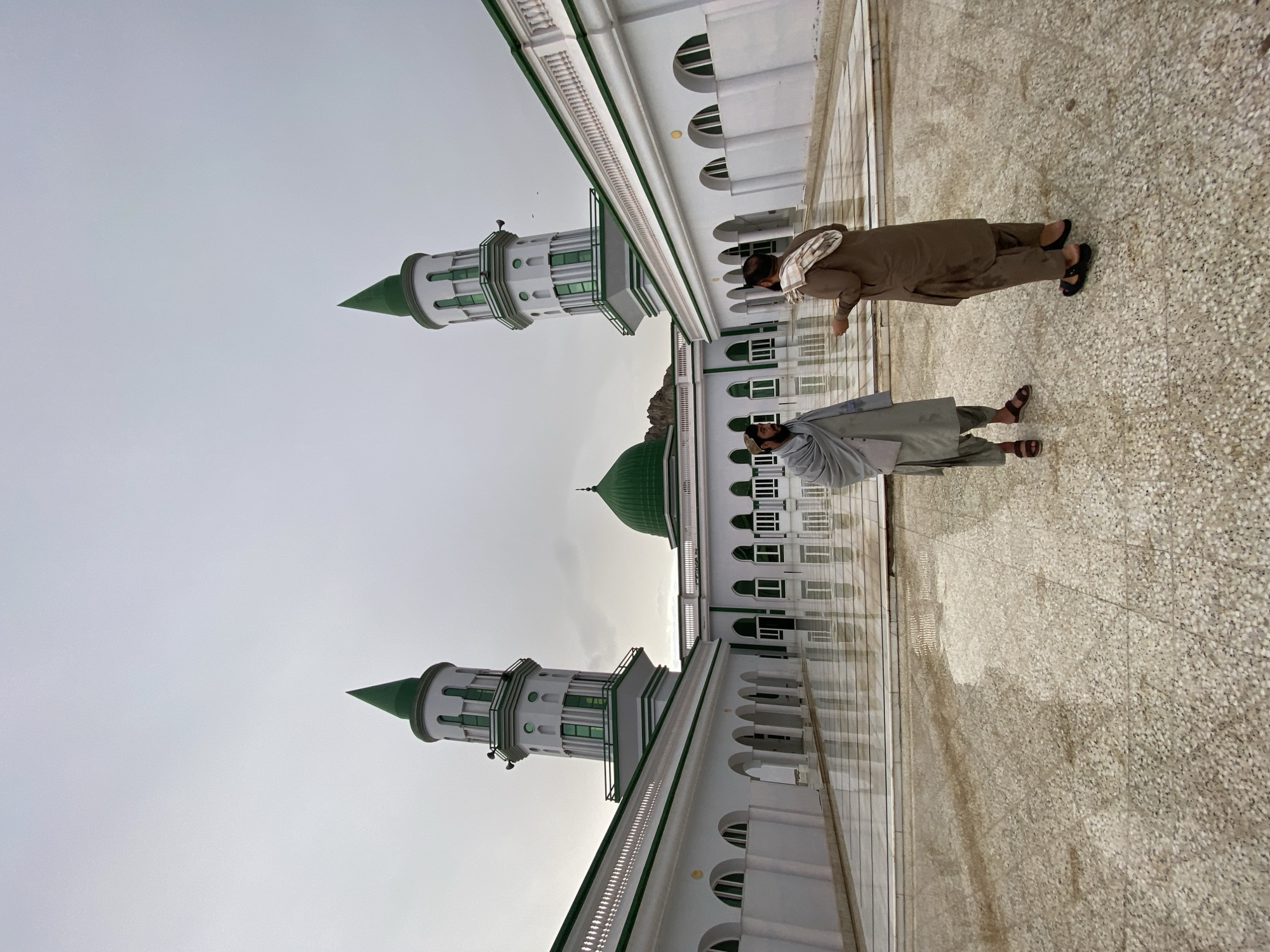 This image depicts the Shahzada Baba Wali Shrine, a mosque complex located in Arghandab, Kandahar, Afghanistan, under an overcast sky
