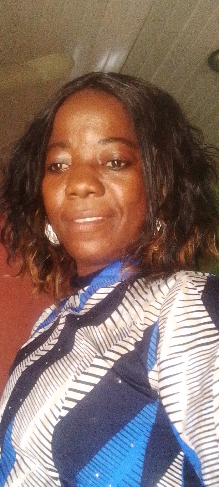 A medium close-up portrait shows an adult female subject of African descent, situated indoors in Adankolo, Nigeria