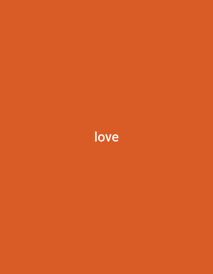 The image displays a uniform, solid burnt orange background. Centrally positioned on this background is the word "love," rendered in white, sans-serif text. No discernible geographical location, including the city of Khiva, Uzbekistan, is present within the visual content. There are no individuals, identifiable physical subjects, objects beyond the text, actions, or interactions depicted. The visual environment consists solely of the colored field and superimposed text.
