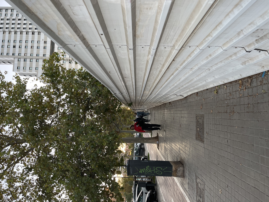 - "An urban street scene in València, Spain, is captured from a low-angle perspective looking down a pedestrian sidewalk" by FM-pNWBR2, licensed under CC BY 4.0
