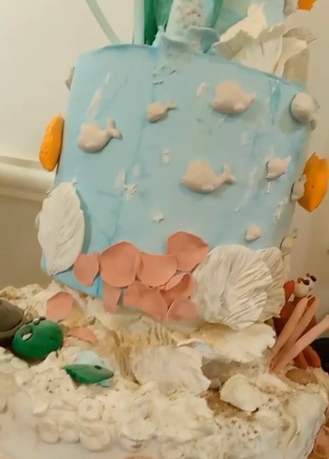 three-tiered cake decorated with an underwater theme