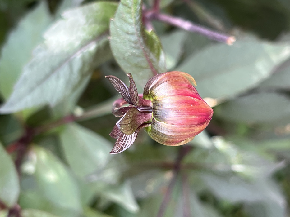 - "The image displays a close-up, macro view of a single, unopened flower bud, centrally positioned and in sharp focus, against a blurred background of green foliage" by FM-mumWF2, licensed under CC BY 4.0