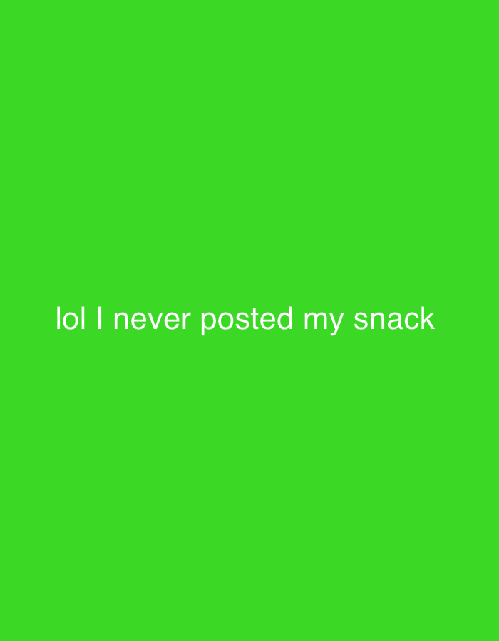 The image is a solid green background with the text "lol I never posted my snack" written in white font
