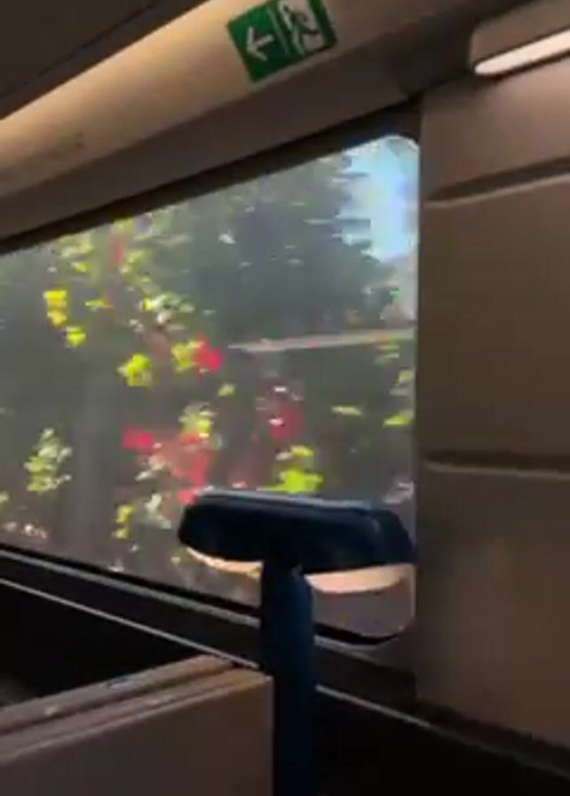 view from inside a train car through a window