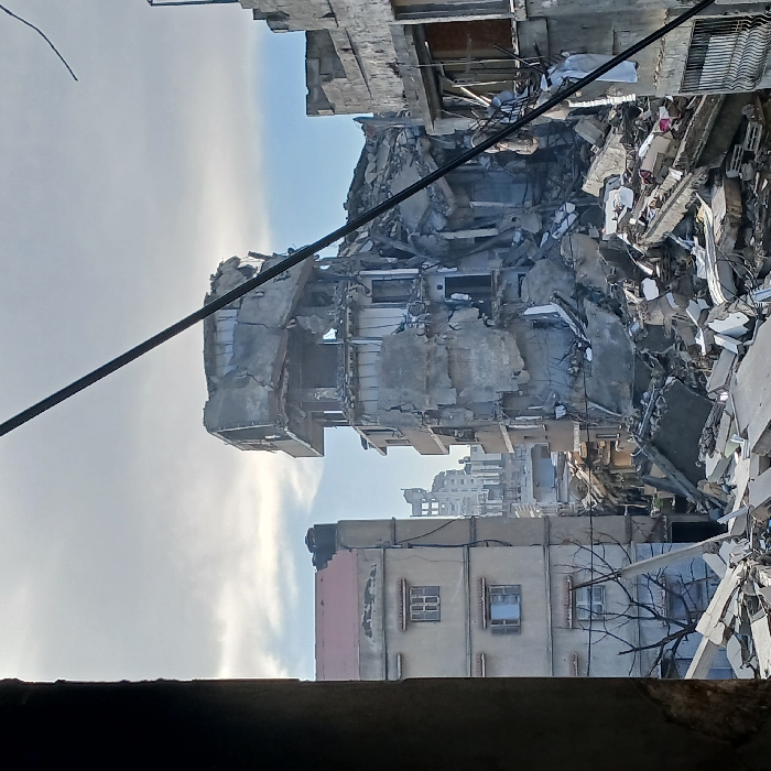 - "A severely damaged building stands amidst rubble and debris" by FM-lJnzj1, licensed under CC BY 4.0