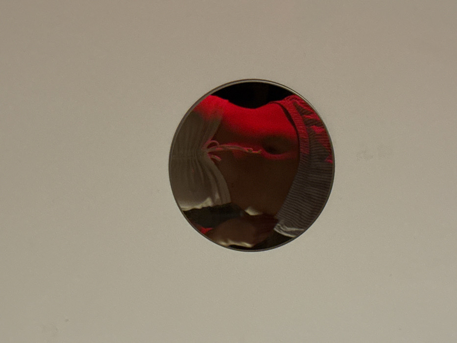 - "A circular peephole in a white surface reveals a close-up, distorted view of a person" by FM-7mF7g2, licensed under CC BY 4.0