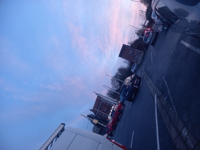 - "The image depicts an urban street scene in Sallaumines, France, at dawn or dusk, indicated by a light blue sky with scattered pink-tinged cirrus clouds and low ambient light" by FM-MtLfs2, licensed under CC BY 4.0