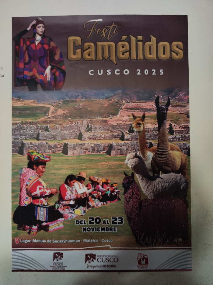 - "This image is a promotional poster titled "Festi Camélidos CUSCO 2025," advertising an event scheduled for November 20-23 at the Sacsayhuaman Module, Matelco, Cuzco, Peru" by FM-20kwN2, licensed under CC BY 4.0
