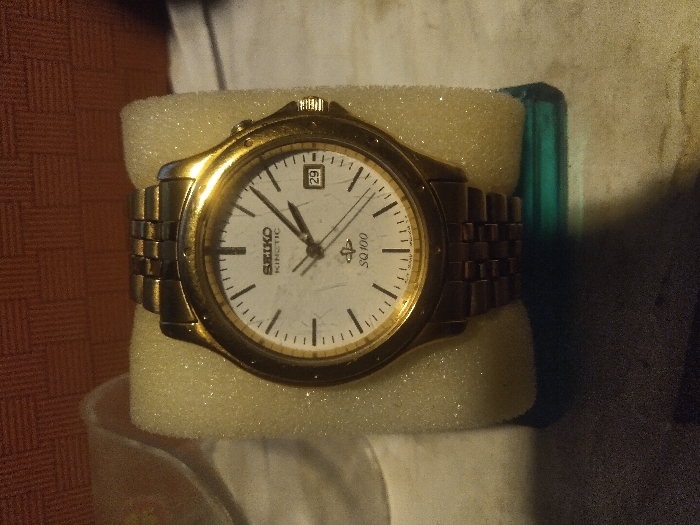 - "The image depicts a gold-toned Seiko Kinetic SQ100 wristwatch, presented on a light cream-colored foam display cushion" by FM-zOoQH3, licensed under CC BY 4.0