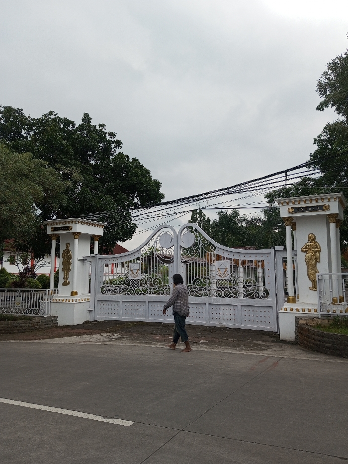 - "The scene, located in Daringbadi, India, depicts a large, closed, white ornate gate flanked by two substantial white pillars, under an overcast sky" by FM-cpNIc2, licensed under CC BY 4.0