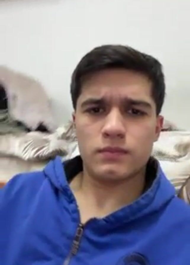 A video shows three young men indoors