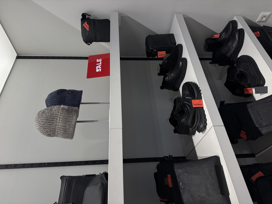 - "The image displays an interior retail store section in Chișinău, Moldova, exhibiting men's accessories and footwear on three white shelves against a light grey wall" by FM-EIKLv1, licensed under CC BY 4.0