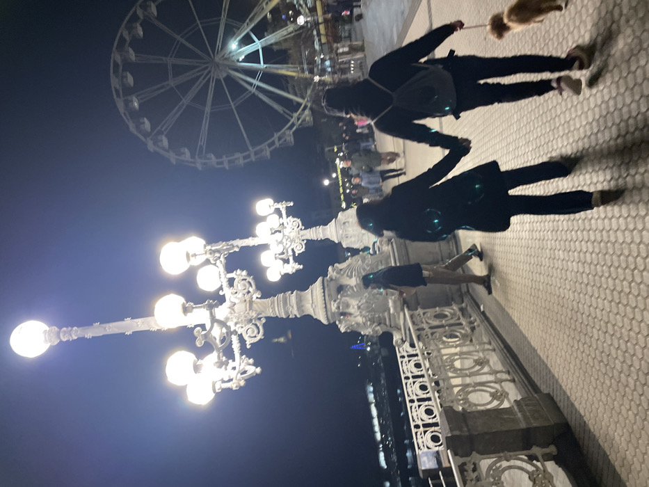 - "At night, a Ferris wheel looms over a pedestrian area illuminated by ornate streetlights" by FM-ekT8x1, licensed under CC BY 4.0