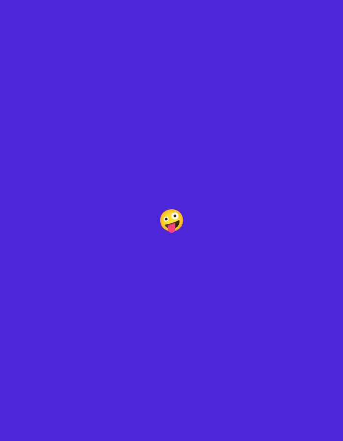 A single 'face with tongue' emoji is centrally positioned against a solid, vibrant purple background
