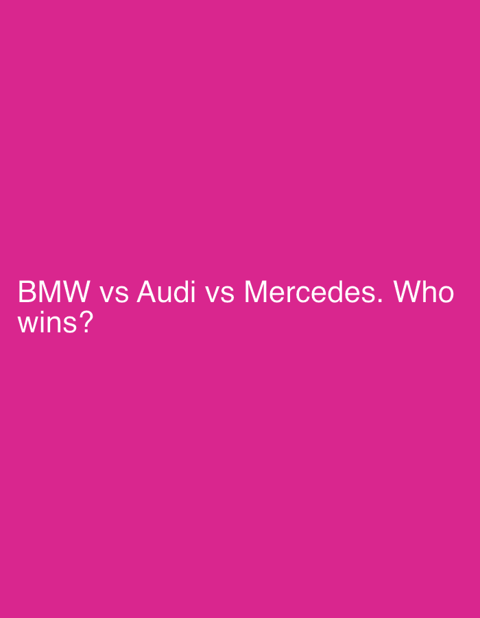 The scene depicts a digital display, located within a commercial or public establishment in Pleven, Bulgaria. The display features a solid magenta background, upon which white sans-serif text is positioned in the lower-left quadrant. The text reads: "BMW vs Audi vs Mercedes. Who wins?" No individuals, other discernible objects, actions, or interactions are present within the frame.