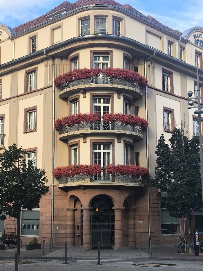 - "An exterior photograph captures the Grand Hotel Bristol building at a street corner in Colmar, France, under a clear blue sky" by FM-NIq6z1, licensed under CC BY 4.0