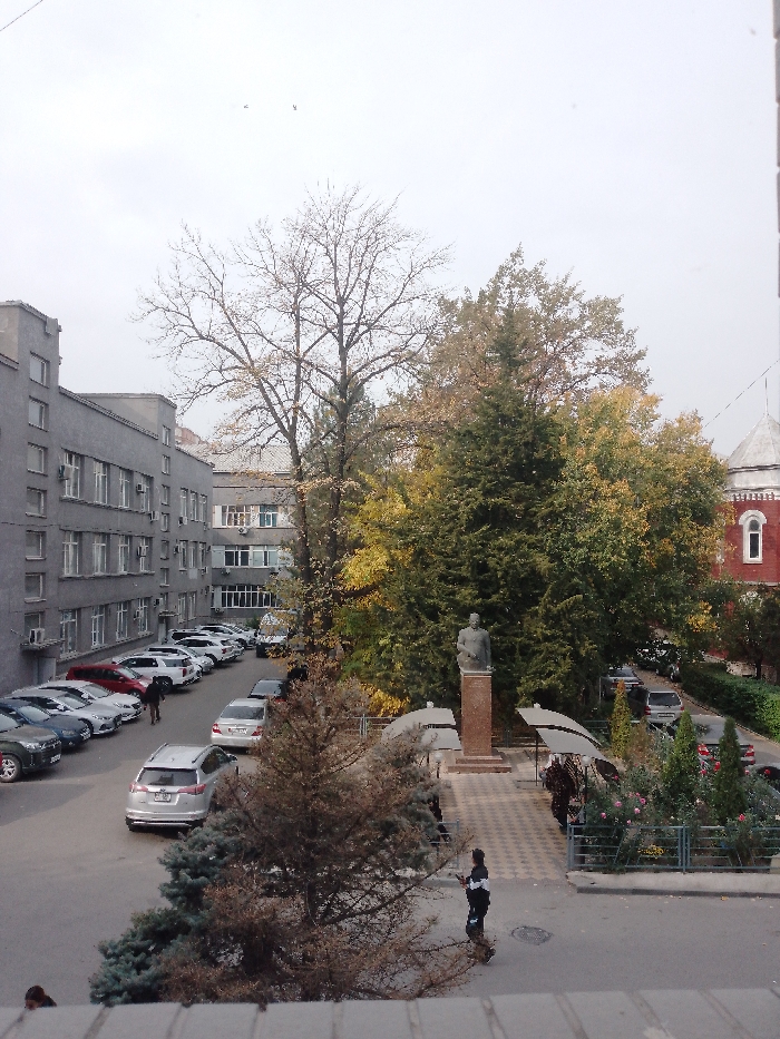 - "This image presents an elevated view of a street and adjacent architectural complex in Bishkek City, Kyrgyzstan, located specifically near the Russian Drama Theater and the Ministry of Education and Science" by FM-uQsOb2, licensed under CC BY 4.0