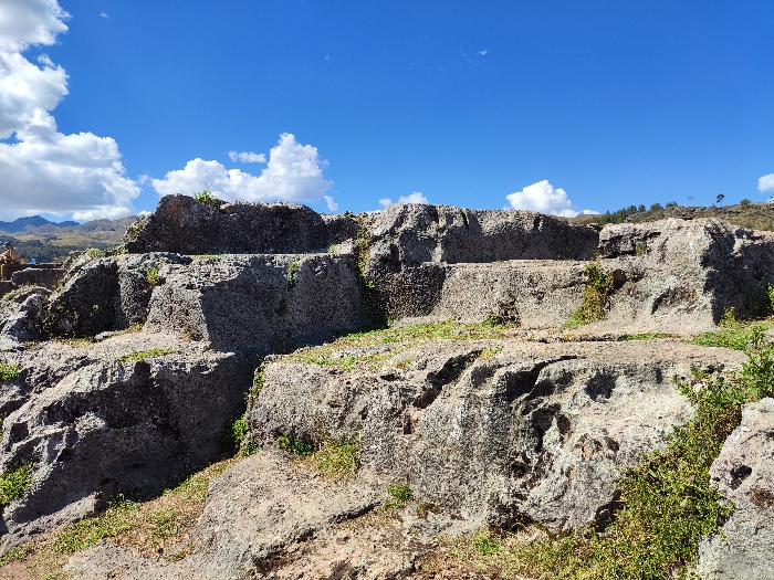 - "This image displays the archaeological site of Q'enqo (Kenko) in Cuzco, Peru, under a clear blue sky with scattered white cumulus clouds" by FM-20kwN2, licensed under CC BY 4.0