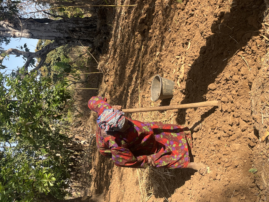 - "In Coyah, Guinea, an outdoor scene depicts an individual, likely an older female, bent over in a cultivated agricultural field under bright sunlight" by FM-w5W832, licensed under CC BY 4.0