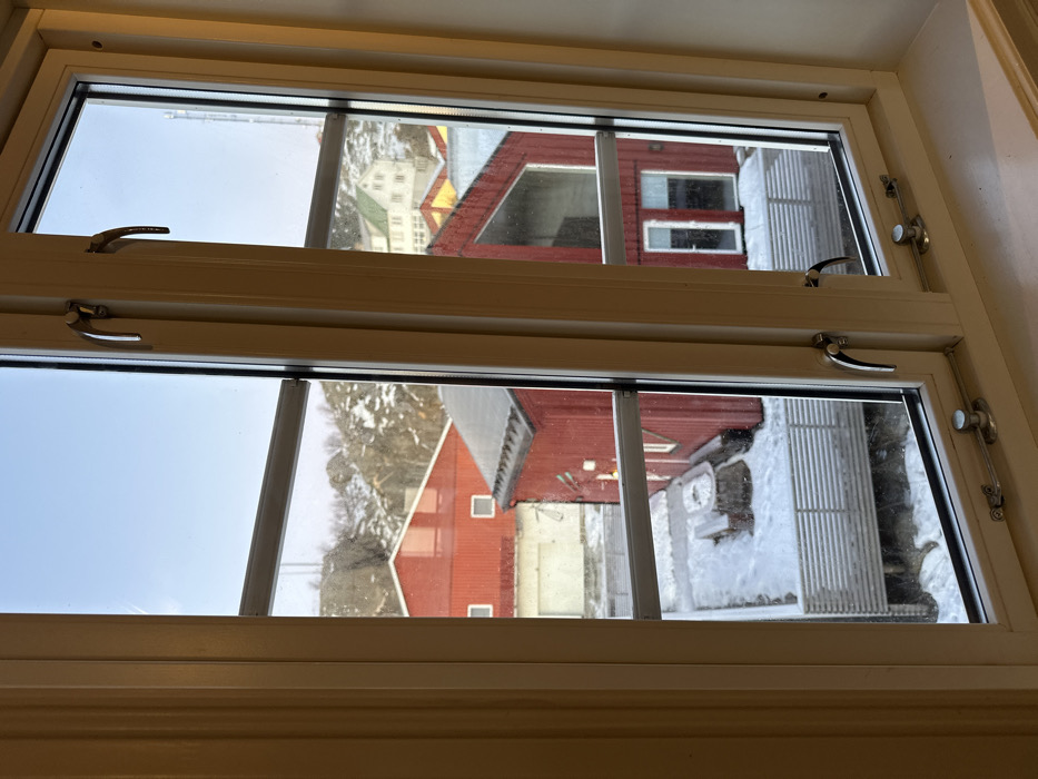 - "The image displays an outdoor scene in Stamsund, Norway, viewed through a white-framed window featuring two vertical panes, two horizontal muntins, silver latches, and lower stays" by FM-9gGO02, licensed under CC BY 4.0