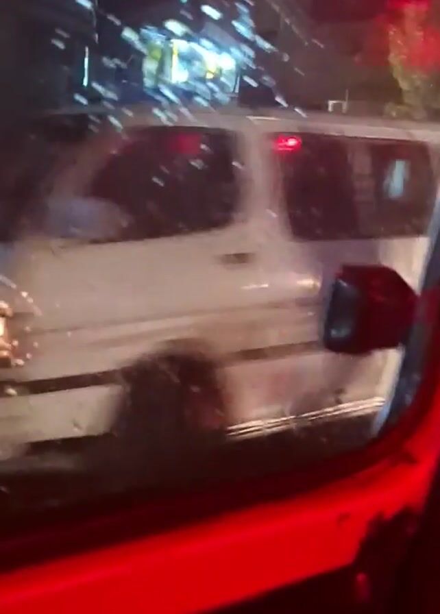 The video, shot at night, appears to be from inside a vehicle looking out the side window, possibly a car or van