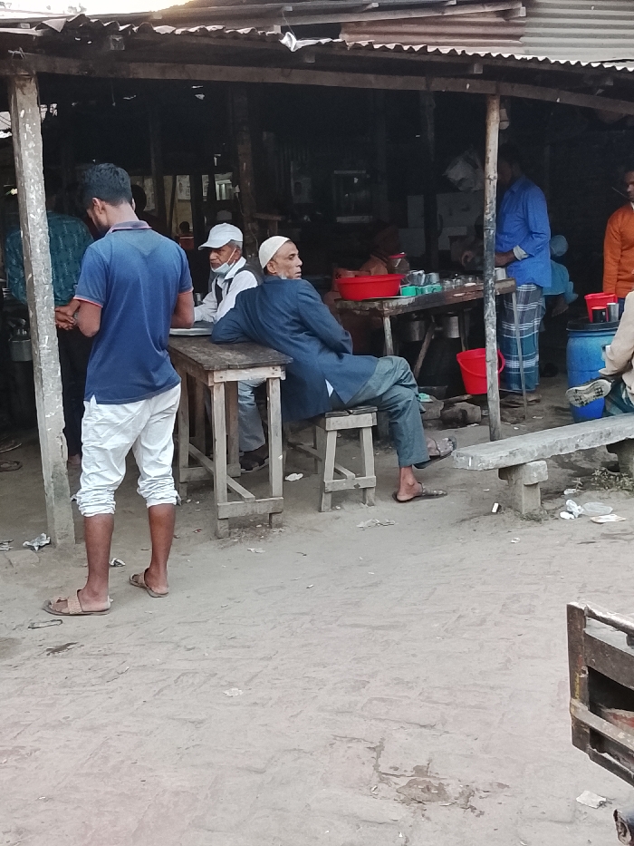 - "This image depicts a casual outdoor eatery or tea stall in Shibpur, Bangladesh, under a corrugated metal roof supported by wooden posts" by FM-nGXIE2, licensed under CC BY 4.0