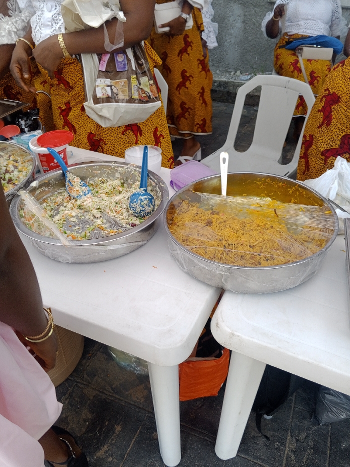 The image displays an outdoor food service setup in Lagos, Nigeria