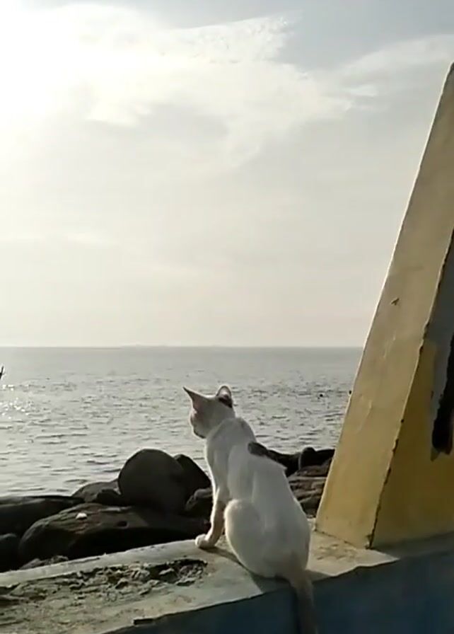 - "white cat sitting on a concrete ledge overlooking the sea" by FM-sAcf03, licensed under CC BY 4.0