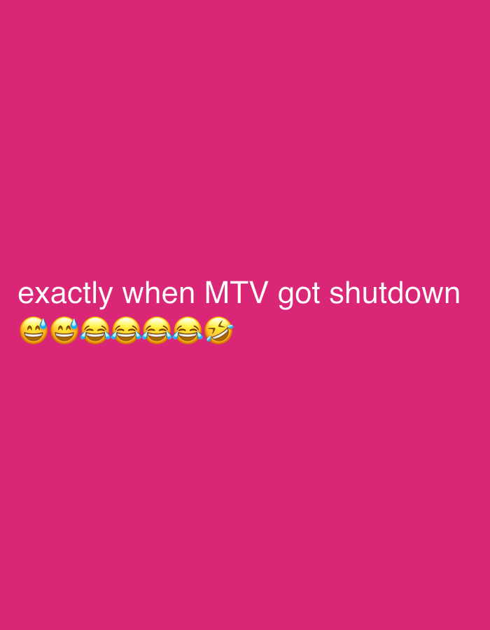 A solid pink background contains the text "exactly when MTV got shutdown" in white