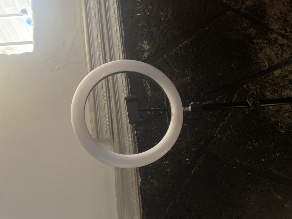 - "A still photograph depicts an illuminated white ring light on a black telescopic stand, positioned within an indoor environment in Barakin Akawo, Nigeria" by FM-Aberv1, licensed under CC BY 4.0