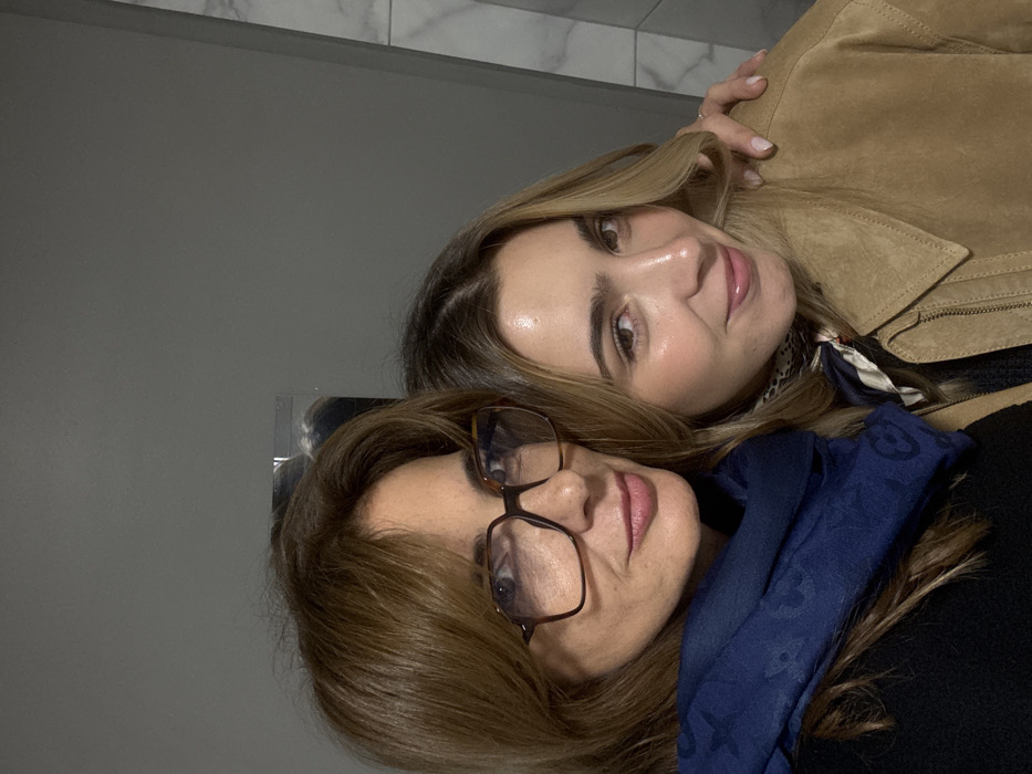 A selfie-style portrait depicts two women indoors in Décines-Charpieu, France