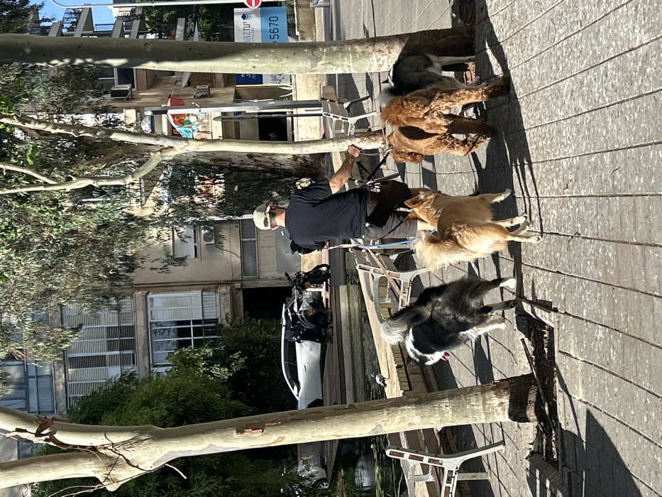 - "A daytime street-level photograph depicts a male dog walker accompanied by four dogs on a paved pedestrian path in Tel Aviv, Israel" by FM-sApNa2, licensed under CC BY 4.0