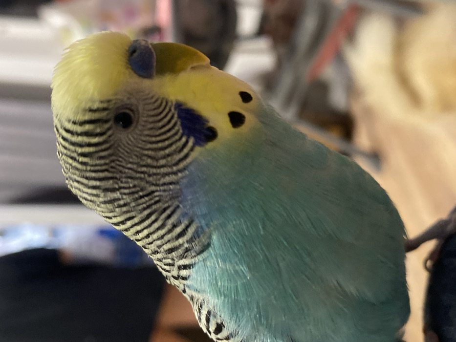 - "A close-up shows a budgerigar with a mix of colors" by FM-gOly33, licensed under CC BY 4.0