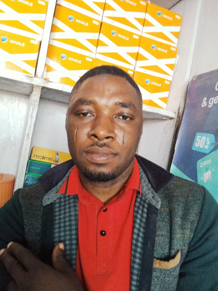 The image depicts a male individual positioned in an indoor setting within Fagge A, Nigeria