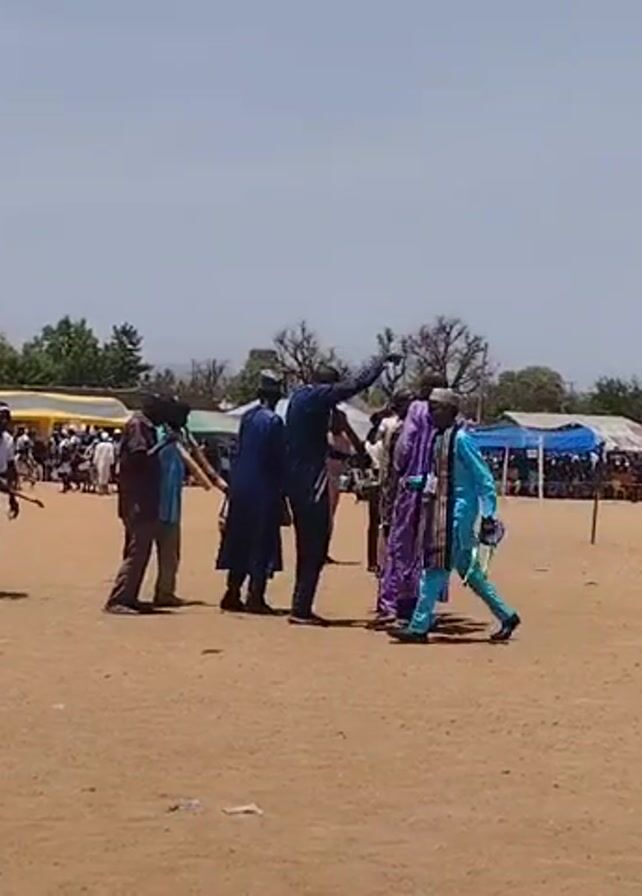 The video depicts a cultural event taking place outdoors on a clear day with a visible sky