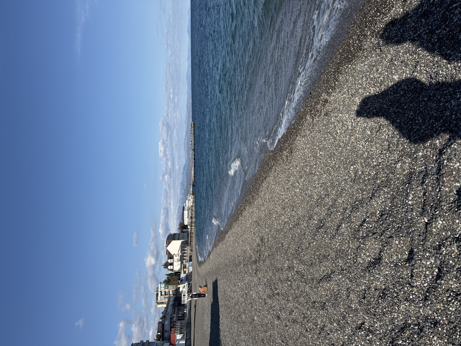 - "The image presents a wide view of a pebble beach and the Black Sea coastline in Alushta, Ukraine, under a clear blue sky with scattered white cumulus clouds" by FM-IIZvf2, licensed under CC BY 4.0