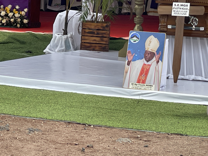 This outdoor scene in Goma, Democratic Republic of the Congo, depicts a setup for a memorial or funeral service