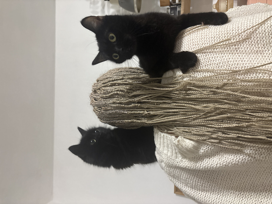 - "Two black cats are positioned near a cat tree" by FM-fLERp2, licensed under CC BY 4.0