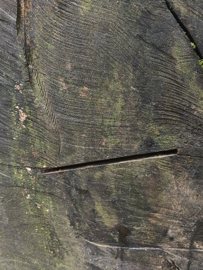 - "The image displays a close-up, overhead view of a weathered section of dark wood, likely a tree stump or large timber, located in Baglung, Nepal" by FM-wLtIe2, licensed under CC BY 4.0