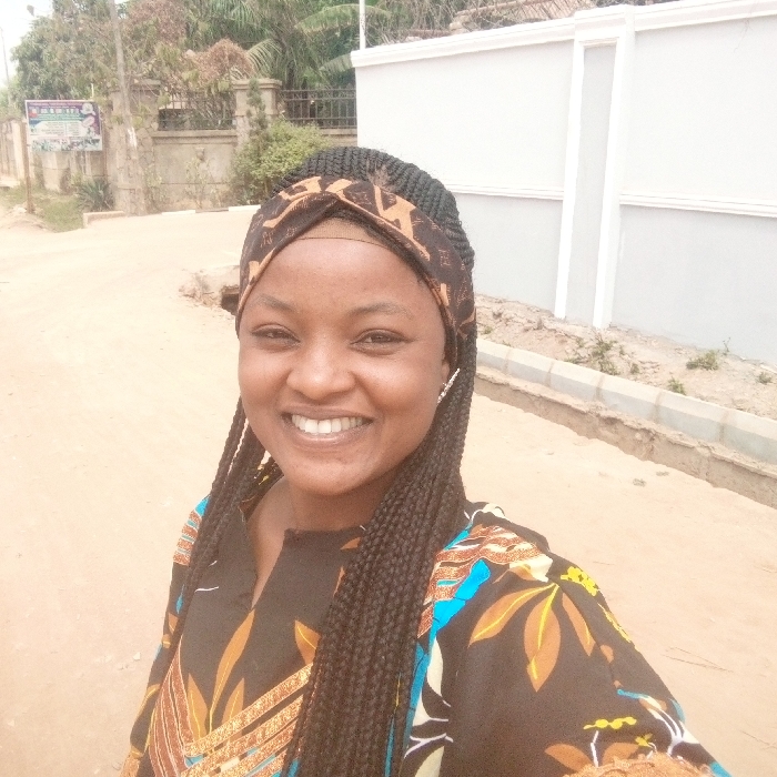 A young adult female is depicted in a close-up, outdoor portrait within the city of Narayi, Nigeria
