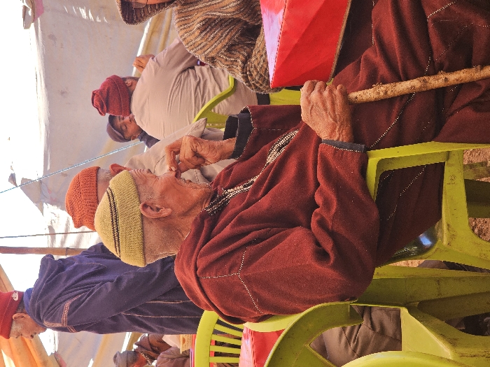 In Azrou, Morocco, a gathering of men takes place under a light-colored tent or canopy
