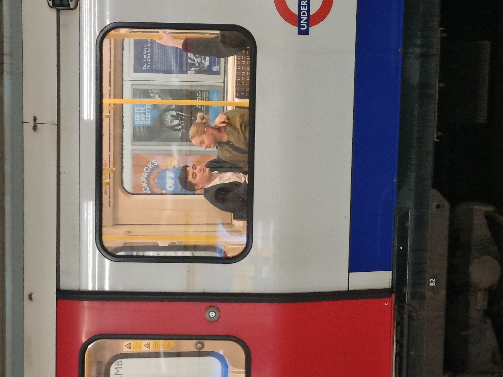 - "The image depicts the side of a London Underground train, likely on the District Line, in London, United Kingdom, viewed from the exterior into a passenger window" by FM-8F8Xp1, licensed under CC BY 4.0