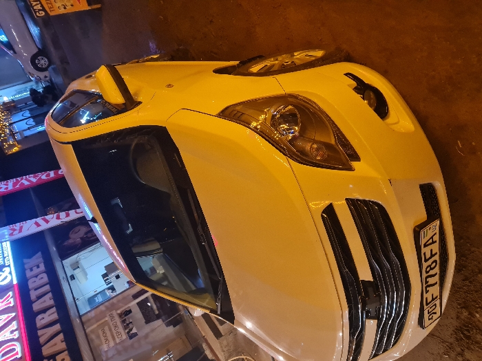 A white Chevrolet sedan with Uzbekistan license plate 90 F 778 FA is parked at an angle on a city street at night in Qorowul, Uzbekistan