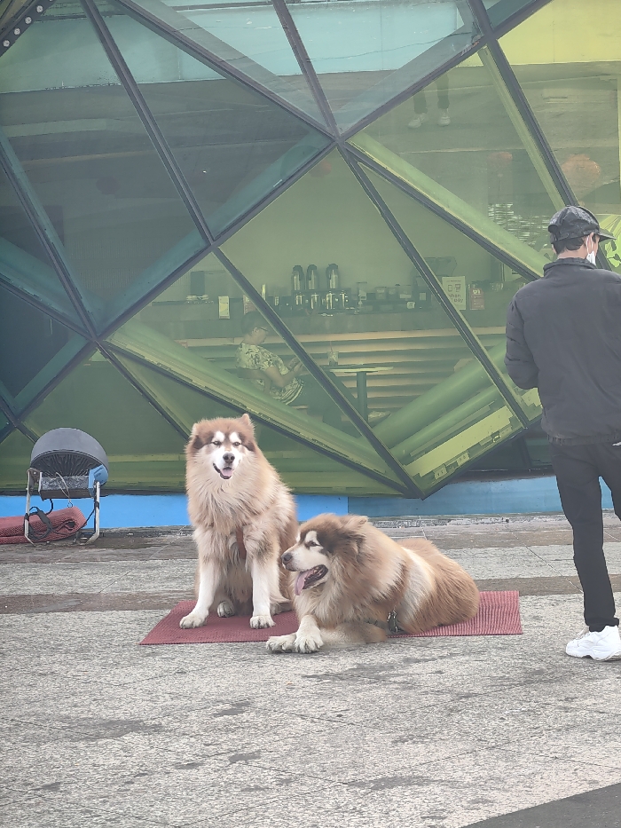 - "Two large, brown and white dogs, resembling Alaskan Malamutes, are positioned on a paved surface in front of a building with a distinctive geometric glass facade in Da Lat, Vietnam, consistent with the architecture of Windmills Cafe (Cối Xay Gió Coffee)" by FM-gnqSa2, licensed under CC BY 4.0