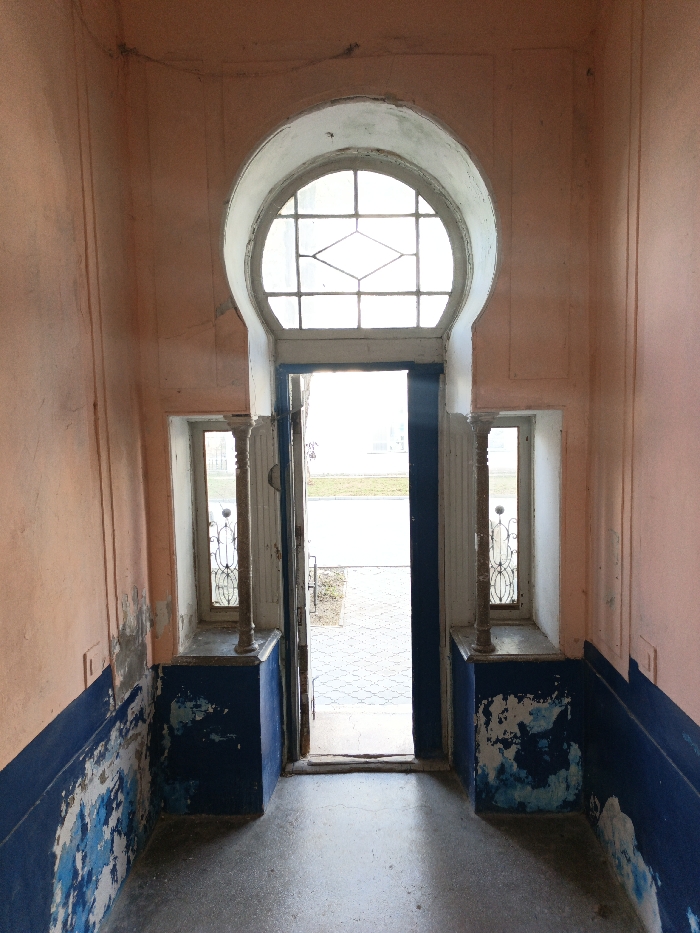 - "The image displays an interior perspective of an entrance hall or vestibule located in Yevpatoriya, Ukraine, looking outward through a main doorway" by FM-YVp303, licensed under CC BY 4.0