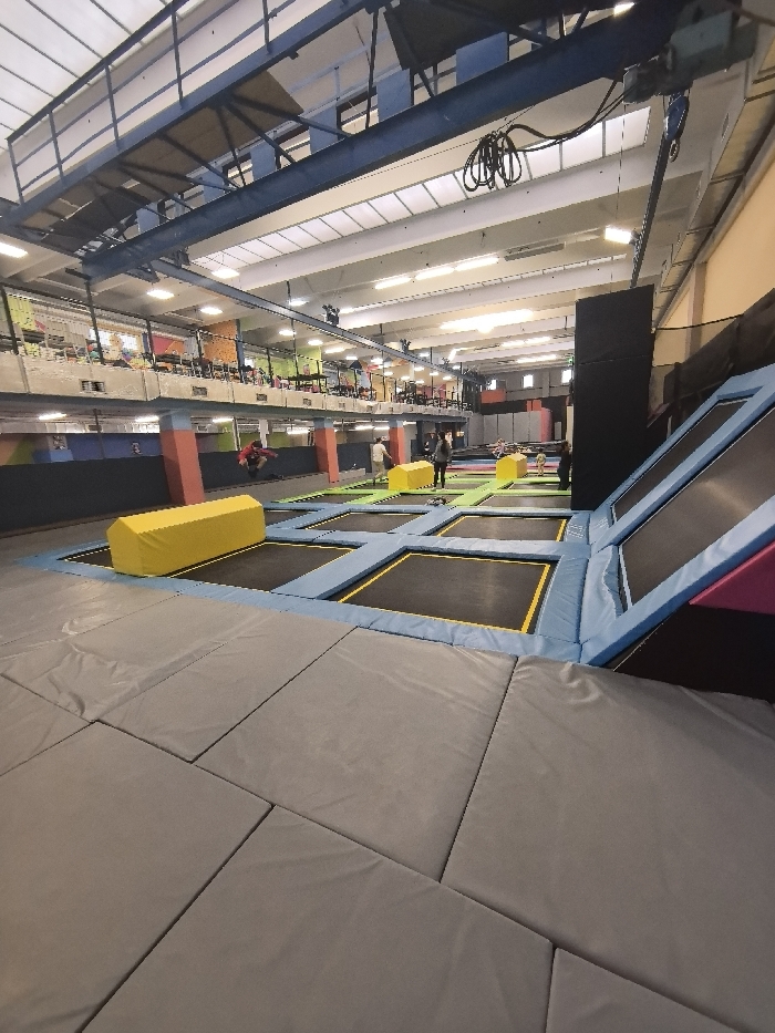 - "This image depicts a large, brightly lit indoor trampoline park, identified as FunRing Park, located at bul" by FM-P27123, licensed under CC BY 4.0