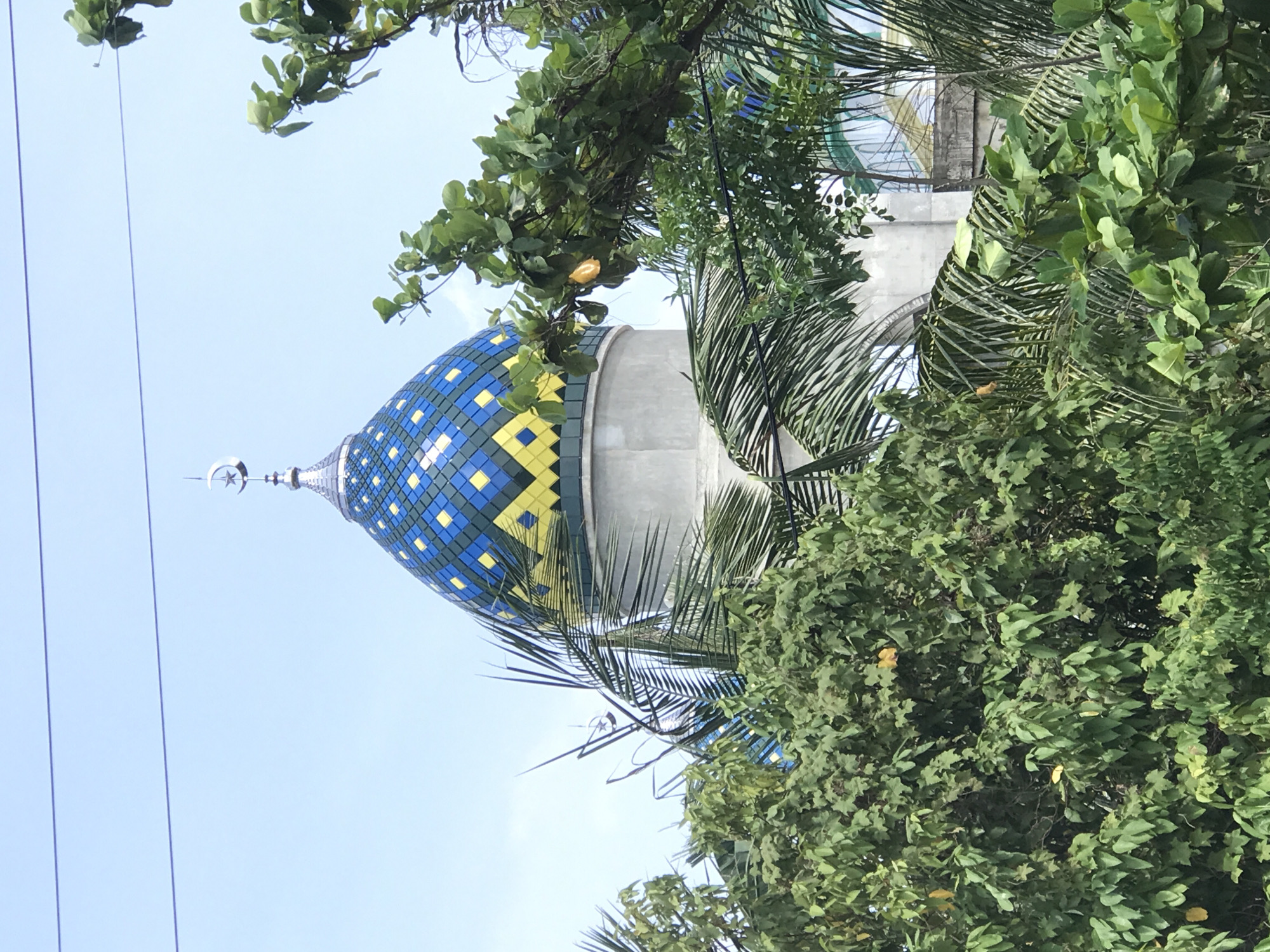 The image depicts a portion of the Baiturrahman Mosque in Lhokseumawe, Indonesia